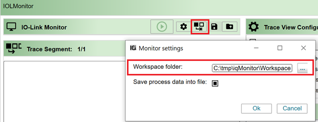 To activate saving process data into file – open iqMonitor Tool setting, select option “Save process data into file” and press ok. The process data will be saved into file “process_data.log” in the same folder as trace files: [Workspace folder][date_time folder]